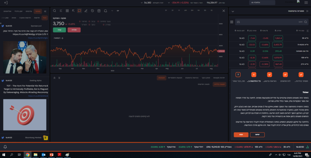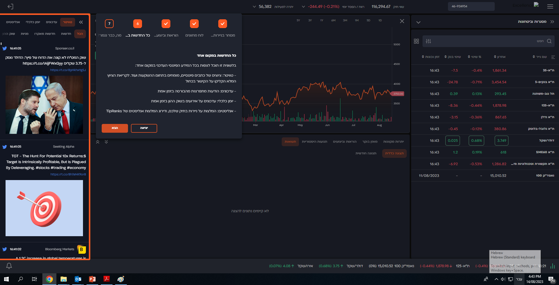 באזור הזה מוצגים נתונים עדכניים על מדדים ומטבעות ומניות.
