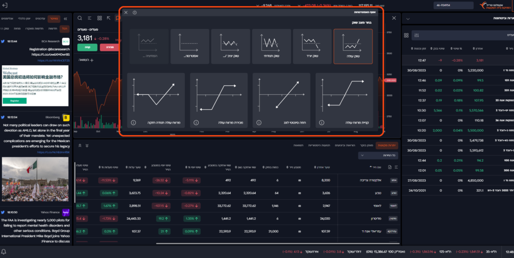 מתוך רשימות מובנות, ובהתאם למצבי שוק שונים. תוכלו לצפות בתמונת מצב של הפוזיציה האישית שלכם, להוסיף לה את ההוראות שממתינות בשוק או ליצור סימולציה חדשה ולבחון אסטרטגיה שאותה תוכלו לשלוח לשוק בלחיצת כפתור.