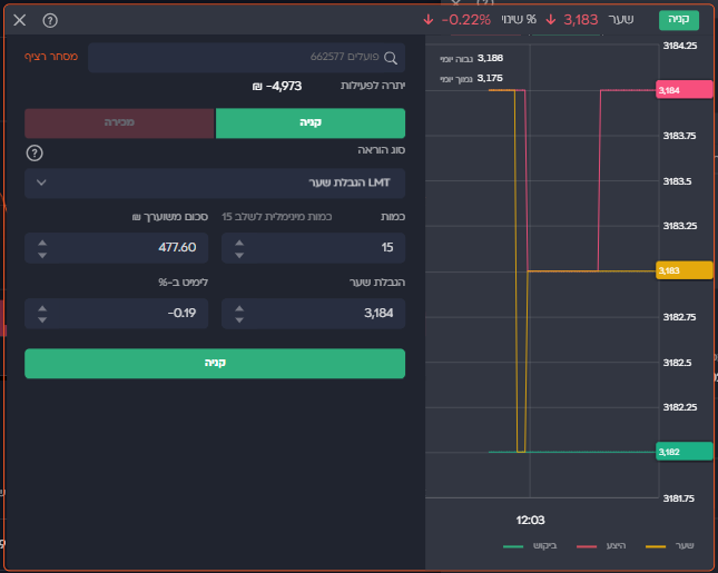 בלחיצה על קיצור הדרך המופיע בראש החלונית (כפתור קניה/מכירה המופיעים תחת חלון החיפוש)