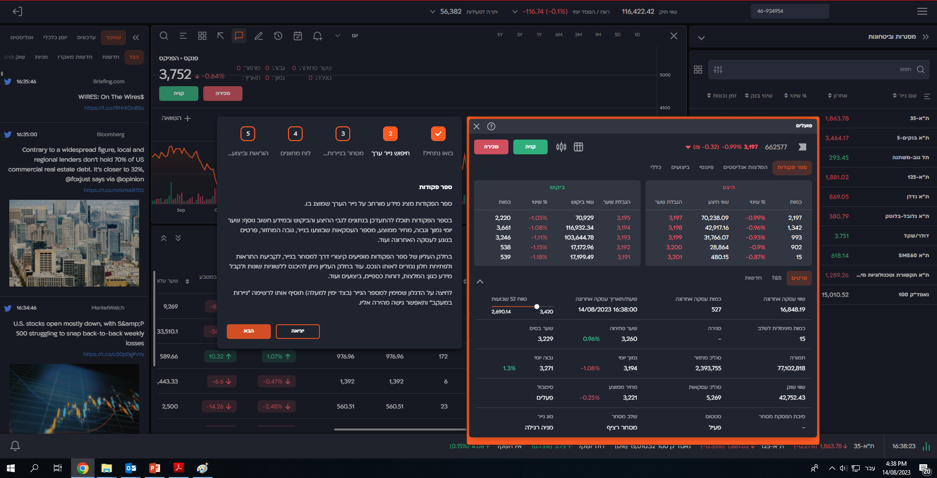 לחיצה על הדגלון שמימין למספר הנייר (בצד ימין למעלה) תוסיף אותו לרשימה ״ניירות במעקב״ ותאפשר גישה מהירה אליו.